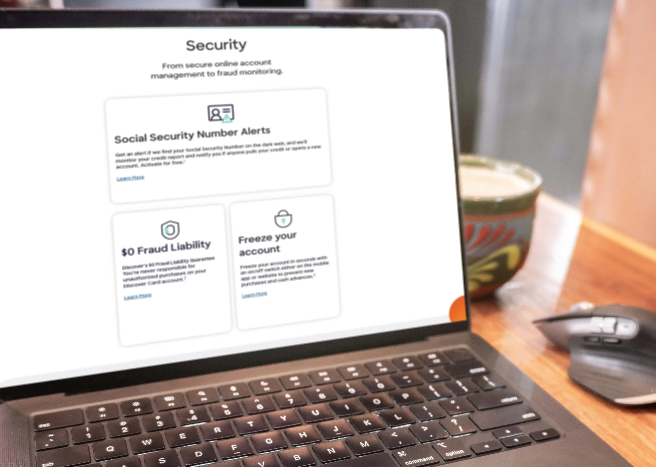We introduced clear call-to-actions (CTAs) for key features, such as the "Freeze Your Account" toggle and Social Security Number alerts, turning the page from a static document into a functional tool.